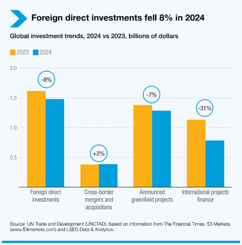 La inversión extranjera directa cae un 8% en 2024 en todo el mundo