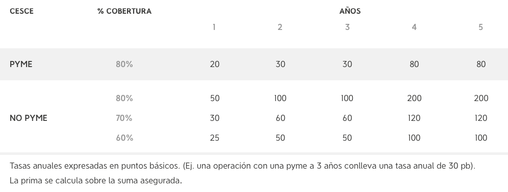 La prima será el único coste de la cobertura. Para las operaciones contratadas bajo esta Línea, quedan eliminados, de forma extraordinaria, los gastos de estudio.