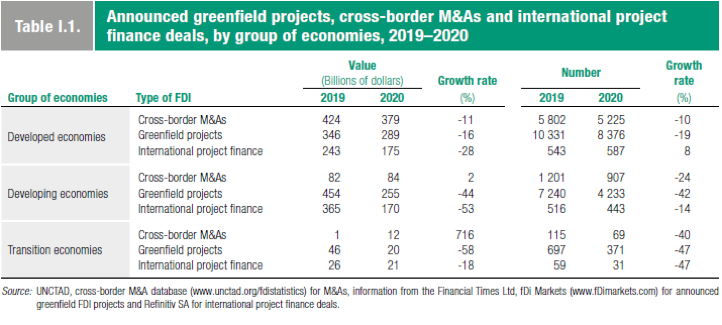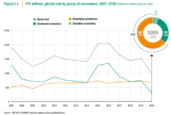 La inversión global desciende un 35% en 2020 por la Gran Pandemia