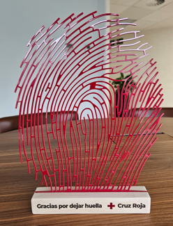 Como símbolo de esta colaboración, de la mano de María del Mar Pageo Giménez, Presidenta de Cruz Roja, Cesce recibió una escultura artesanal elaborada en Ucrania, que representa la huella conjunta que ambas entidades han dejado en la vida de personas afectadas por emergencias y desastres naturales.