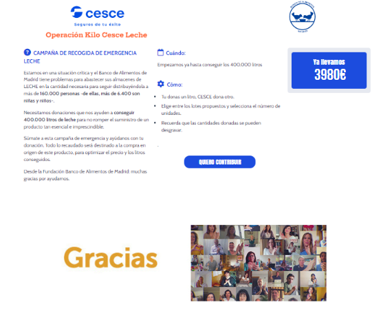 Del 5 al 19 de junio, Cesce se unió a la Operación Kilo Especial leche organizada por el Banco de Alimentos debido a la emergencia ya que las reservas de leche en el Banco de Alimentos se encontraban en niveles mínimos. Esta campaña ha dado la oportunidad de colaborar a todas aquellas personas que deseaban contribuir, permitiendo realizar una donación cuyo importe íntegro ha sido destinado a la compra de leche.