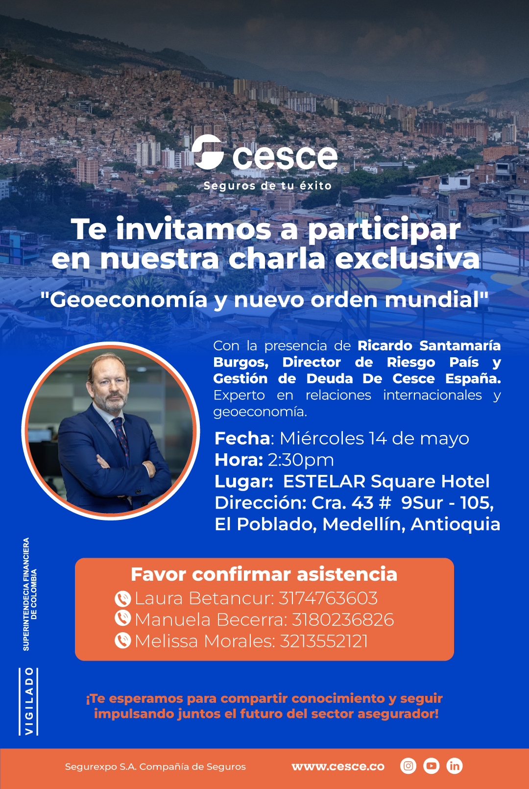 Te invitamos a participar en nuestra charla en exclusiva: 'Geoeconomía y nuevo orden mundial' con la presencia de Ricardo Santamaría, Director de Riesgo País y Gestión de Deuda de Cesce.