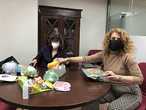 La educadora social María Alonso y la psicóloga Ana Belén nos explicaron de una manera muy sencilla, pero con gran alegría e ilusión, la labor que realizan en la fundación. Nos intentaron trasladar cómo esa pequeña ayuda como voluntarias esa tarde envolviendo regalos, se iba a transformar en las sonrisas de un montón de niños hospitalizados y el regocijo de sus familias.