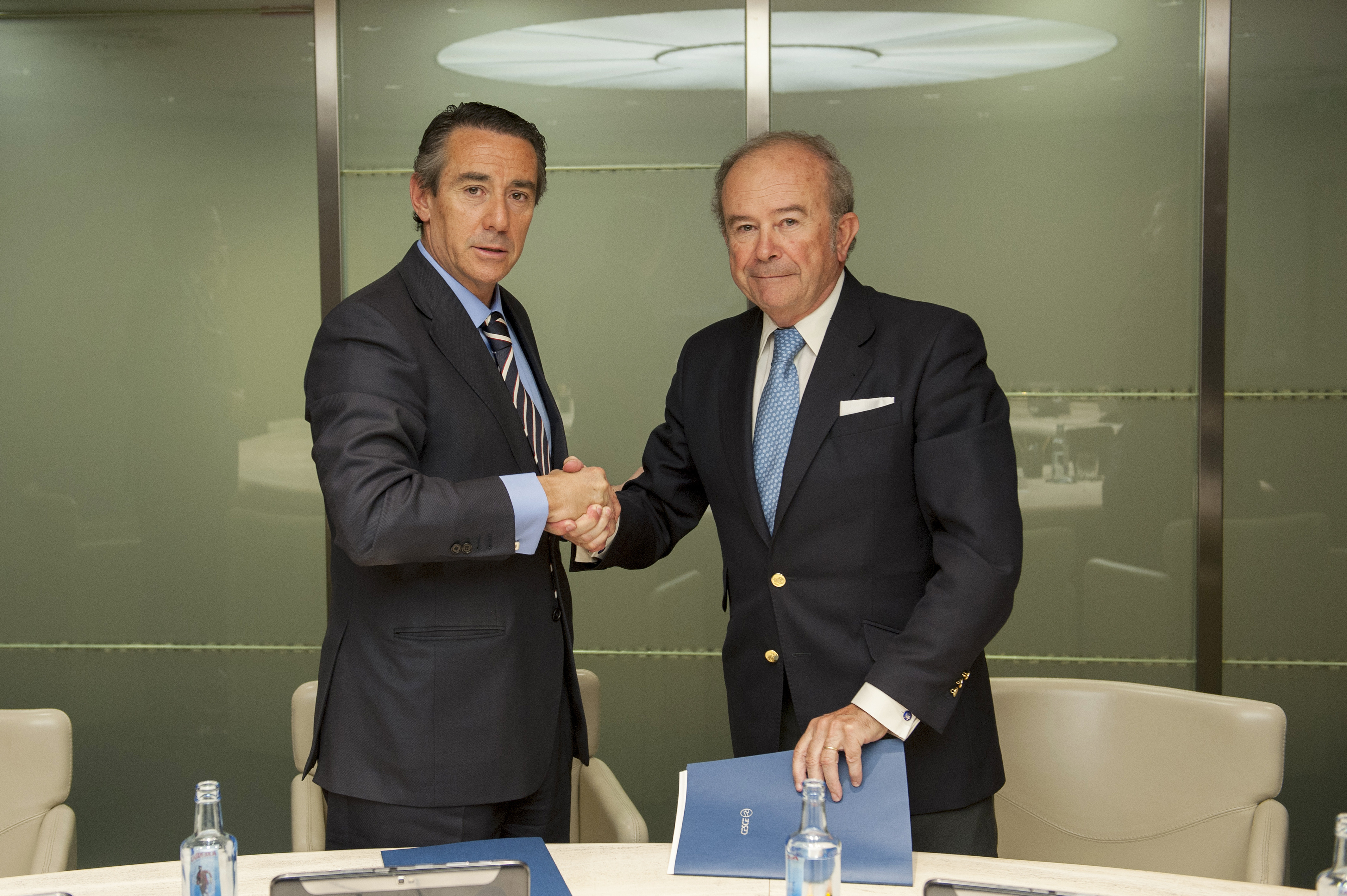 El Presidente de CESCE, Álvaro Bustamante, y el Director General de Negocio de CaixaBank, Juan Antonio Alcaraz, firman el acuerdo.[/caption]