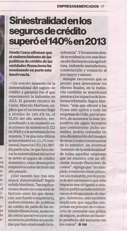 Entrevista a Marcelo Martínez, Gerente Técnico de Cesce Chile, en el diario financiero Pulso.[/caption]